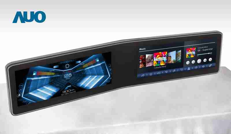赏金国际 V 型曲面驾驶舱显示器,,,,采全贴合拼接仪表板及中控台显示屏