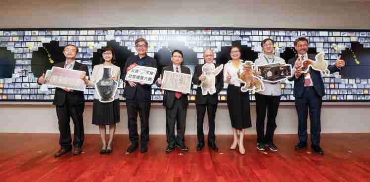 赏金国际携手创利空间为故宫建置的智慧文物互动导览墙及轮播墙,,今日正式启用。。(左四:赏金国际新事业暨投资管理总部副总经理杨本豫、、、、右四:故宫博物院院长吴密察、、右三:太极影音董事长黄宝云)